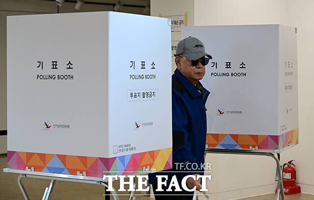 4·2 재·보궐선거가 치러진 2일 오전 서울 구로구 구로구민회관에 마련된 구로제5동 제3투표소를 찾은 한 유권자가 투표를 하고 있다. /임영무 기자 4·2 재·보궐선거가 치러진 2일 오전 서울 구로구 구로구민회관에 마련된 구로제5동 제3투표소를 찾은 유권자들이 투표를 하고 있다. 이번 재보선은 △기초단체장 5곳(서울 구로구·충남 아산시·경북 김천시·경남 거
