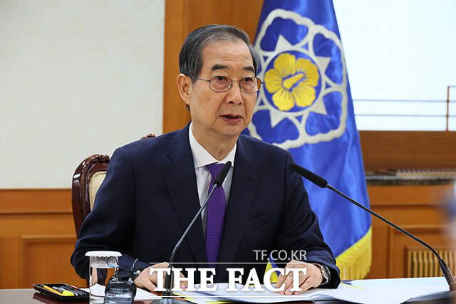 한덕수 대통령 권한대행 국무총리가 2일 오전 서울 종로구 정부서울청사에서 열린 치안관계장관회의에 참석해 모두발언을 하고 있다. /국무총리실 한덕수 대통령 권한대행 국무총리가 2일 오전 서울 종로구 정부서울청사에서 열린 치안관계장관회의에 참석해 모두발언을 하고 있다. 한덕수 대통령 권한대행 국무총리는 헌법재판소의 윤석열 대통령 탄핵심판 선고를 이틀 앞두고 열