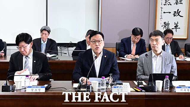 김병환 금융위원장(가운데)이 7일 오전 서울 종로구 정부서울청사에서 열린 금융상황 점검회의에 참석해 모두발언을 하고 있다. /임영무 기자 김병환 금융위원장이 7일 오전 서울 종로구 정부서울청사에서 열린 금융상황 점검회의를 주재하고 있다. 김 위원장은 이날 회의에서 "지난주 미국의 상호관세 부과로 국내외 금융시장 불확실성이 매우 높은 상황"이라며 "다음 정부