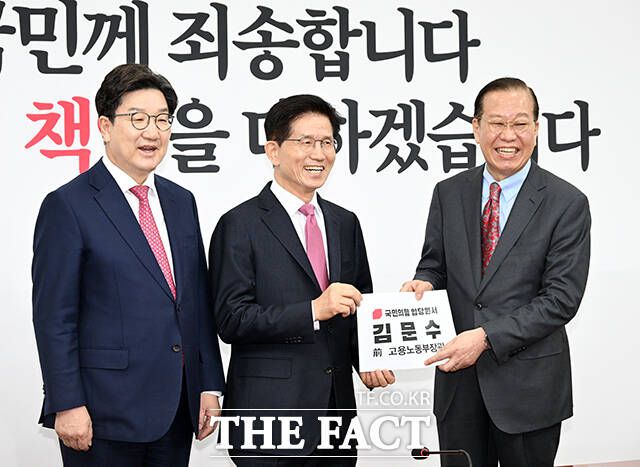국민의힘 입당원서 제출하는 김문수 전 고용노동부 장관 [TF사진관]