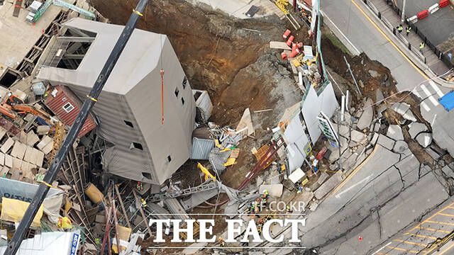 처참히 무너진 '광명 신안산선 붕괴 현장'… '실종자 1명 수색 총력' [TF사진관]