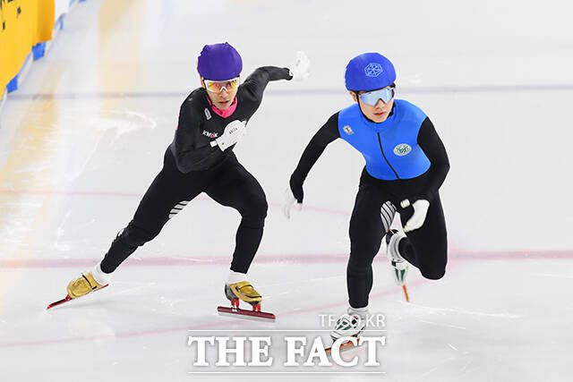 쇼트트랙 곽윤기(왼쪽)가 13일 오후 서울 양천구 목동실내빙상장에서 열린 '2025-2026시즌 쇼트트랙 국가대표 2차 선발대회' 남자부 1000m 예선에서 역주하고 있다. /장윤석 기자 쇼트트랙 곽윤기가 13일 오후 서울 양천구 목동실내빙상장에서 열린 '2025-2026시즌 쇼트트랙 국가대표 2차 선발대회' 남자부 1000m 예선에서 역주하고 있다. 지난