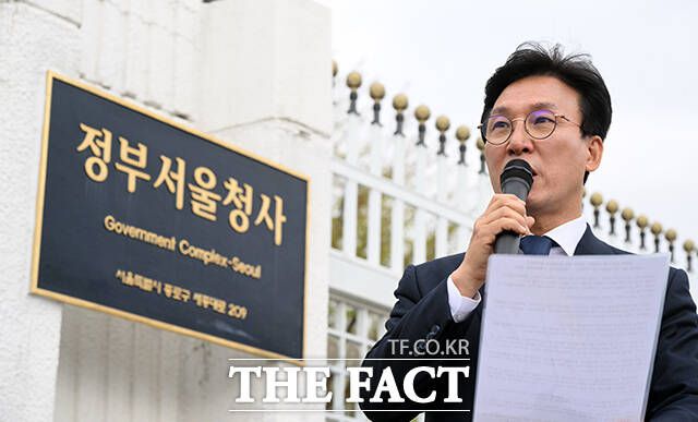 김민석 더불어민주당 최고위원이 17일 오전 서울 종로구 정부서울청사 앞에서 미국의 관세 부과 조치와 관련해 한덕수 대통령 권한대행 국무총리의 졸속 협상을 규탄하는 1인 시위를 열고 발언 하고 있다. /임영무 기자 김민석 더불어민주당 최고위원이 17일 오전 서울 종로구 정부서울청사 앞에서 미국의 관세 부과 조치와 관련해 한덕수 대통령 권한대행 국무총리의 졸속