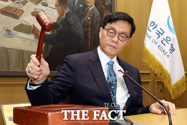 이창용 한국은행 총재가 17일 서울 중구 한국은행 본관에서 열린 금융통화위원회 본회의에 개회를 선언하는 의사봉을 치고 있다. /사진공동취재단 한국은행 금융통화위원회가 17일 2분기 첫 통화정책방향 회의를 열고 현재 연 2.75%인 기준금리를 조정할지 결정을 내린다. 금융시장 다수의 전문가들은 미국 도널드 트럼프 대통령의 관세 정책 등에 따른 불확실성을 염두