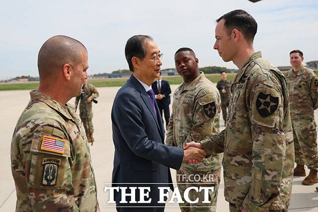 캠프 험프리스 방문한 한덕수 권한대행 "같이 갑시다" [TF사진관]