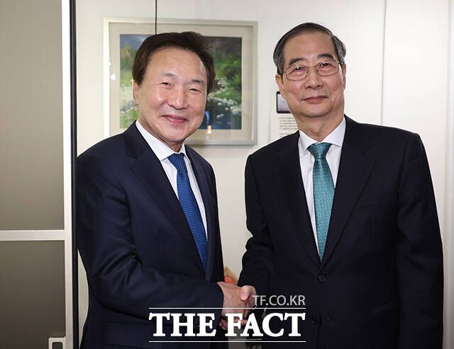 손학규와 만찬 한덕수, '개헌 빅텐트' 속도 [TF사진관]