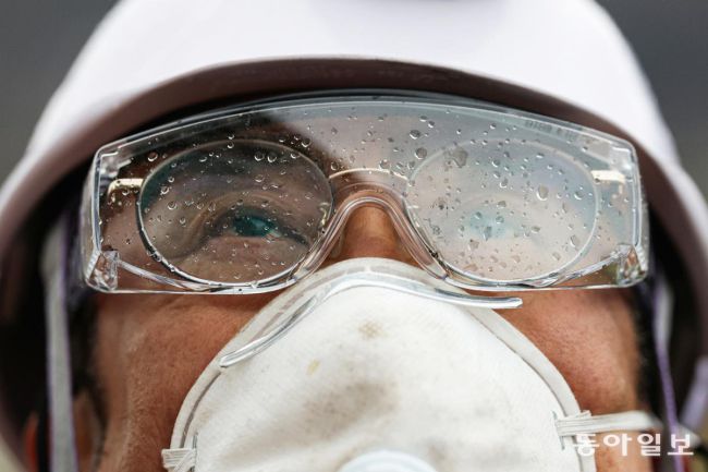 산림청이 경북 의성과 영덕 지역 산불 주불 진화율이 100%를 달성했다고 발표한 28일 오후 영덕군 산불전문예방진화대원 김호홍 씨(60)가 현장에서 철수한 뒤 떨어지는 빗방울을 맞으며 하늘을 바라보고 있다. 영덕=박형기 기자 oneshot@donga.com 일주일간 이어진 경북 산불의 ‘주불 진화 완료’가 선언된 28일 오후. 떨어지는 빗방울을 맞으며 하늘