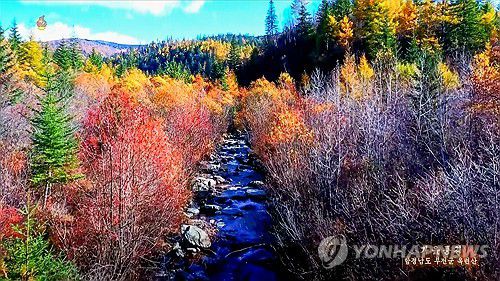(서울=연합뉴스) 북한 조선중앙TV가 12일 방영한 함경남도 부전군 옥련산의 가을 풍경. 옥련산은 천연기념물인 옥련산돌강이 있는 명승지다. [조선중앙TV 화면] 2025.11.12 [국내에서만 사용가능. 재배포 금지. For Use Only in the Republic of Korea. No Redistribution] nkphoto@yna.co.kr ▶제
