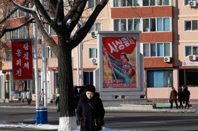 [평양=AP/뉴시스] 25일 북한 평양 중앙지구에서 시민들이 선전 구호가 걸려있는 거리를 거닐고 있다. 2025.12.26. [사진 영상 제보받습니다] 공감언론 뉴시스가 독자 여러분의 소중한 제보를 기다립니다. 뉴스 가치나 화제성이 있다고 판단되는 사진 또는 영상을 뉴시스 사진영상부(n-photo@newsis.com)로 보내주시면 적극 반영하겠습니다.