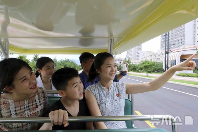 [원산=AP/뉴시스] 지난 1일 북한 강원도 원산의 원산-갈마 해안관광지구에서 관광용 카트에 탑승한 북한 주민들이 주변을 둘러보고 있다. 북한 노동신문은 갈마관광지구 개장을 알리며 "세상에 없는 황홀한 관광 명소"라고 선전했다. 원산 명사십리 해변 일대에 조성된 관광지구 개발은 북한이 11년간 공들인 숙원사업으로 알려져 있다. 2025.07.04. [사진