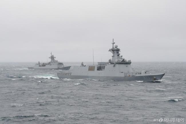 [the300] 통일부 "조속·안전하게 송환…시기는 여러 상황 봐야" 지난해 10월22일 해군1함대사령부 소속 호위함 포항함(오른쪽)과 강원함(왼쪽)이 동해상 합동해상기동훈련에 나선 모습. / 사진=해군 정부가 최근 서해와 동해에서 표류하다가 우리측 북방한계선(NLL)을 넘어온 북한 주민 6명을 해상으로 송환하는 방식을 검토 중인 것으로 알려졌다. 북한 주