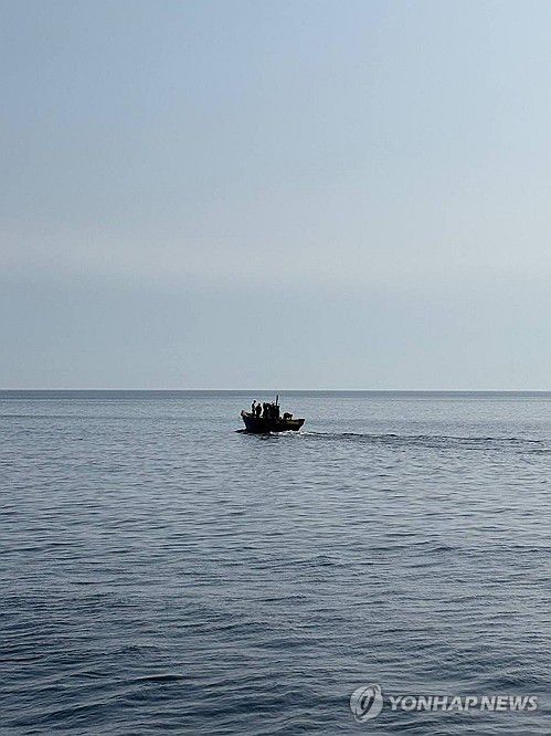 (서울=연합뉴스) 북한 주민들은 태운 선박이 9일 동해상에서 이동하고 있다. 정부는 지난 3월과 5월에 각각 서해와 동해 북방한계선(NLL) 이남에서 구조한 북한 주민 6명을 9일 동해상에서 송환했다고 밝혔다. 통일부에 따르면 북한 주민들을 태운 선박은 오전 8시 56분께 동해 NLL을 넘었고, 9시 24분께 북한 경비정과 만났다. 2025.7.9 [통일부