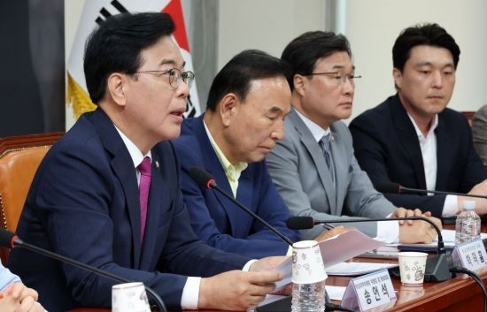 송언석 국민의힘 비상대책위원장 겸 원내대표가 24일 국회에서 열린 비상대책위원회의에서 발언하고 있다. <ⓒ투자가를 위한 경제콘텐츠 플랫폼, 아시아경제(www.asiae.co.kr) 무단전재 배포금지>