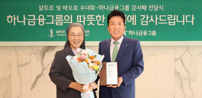 ‘요양원 8년 지원’ 하나금융, 샬트르 수녀회 감사패