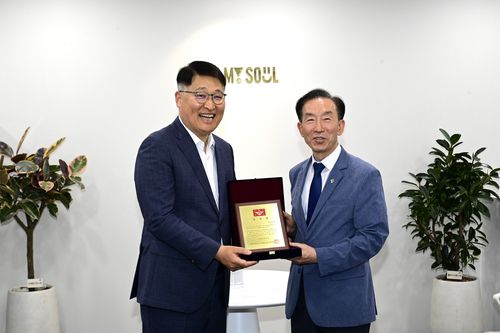 청년장병 재무·마음건강 종합지원…서울시, 국방부 감사패 받아 (서울=연합뉴스) 서울시는 국방의 의무를 다하는 청년 장병을 위한 정책 지원 공로를 인정받아 국방부로부터 감사패를 받았다고 24일 밝혔다. 김태균 서울시 행정1부시장(왼쪽)과 김수삼 국방부 인사복지실장이 감사패 전달 후 기념촬영을 하고 있다. 2025.6.24 [서울시 제공. 재판매 및 DB 금지