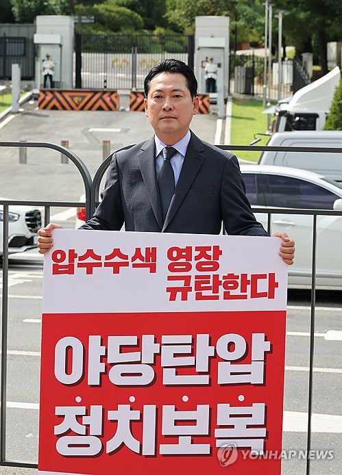 (서울=연합뉴스) 서명곤 기자 = 국민의힘 장동혁 당 대표 후보가 20일 용산 대통령실 앞에서 국민의힘에 대한 특검 수사에 대해 비판하는 1인 시위를 하고 있다. 2025.8.20 seephoto@yna.co.kr ▶제보는 카카오톡 okjebo ▶연합뉴스 앱 지금 바로 다운받기~ ▶네이버 연합뉴스 채널 구독하기 <저작권자(c) 연합뉴스, 무단 전재-재배포,