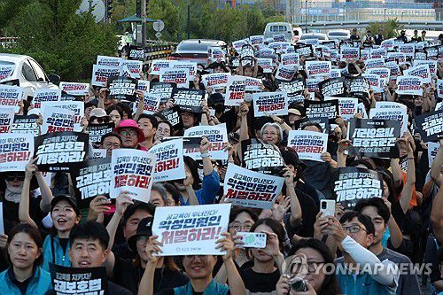 (전주=연합뉴스) 나보배 기자 = 서울 서초구 초등학교에서 신규 교사가 스스로 목숨을 끊은 '서이초 사건'을 계기로 열렸던 '공교육 멈춤의 날' 2주년인 4일, 전국교직원노동조합 전북지부가 전주시 덕진구 전미동의 한 도로에서 집회를 열고 "교육공동체 파괴하는 악성민원인 처벌하라"고 촉구하고 있다. 2025.9.4 warm@yna.co.kr ▶제보는 카카오톡