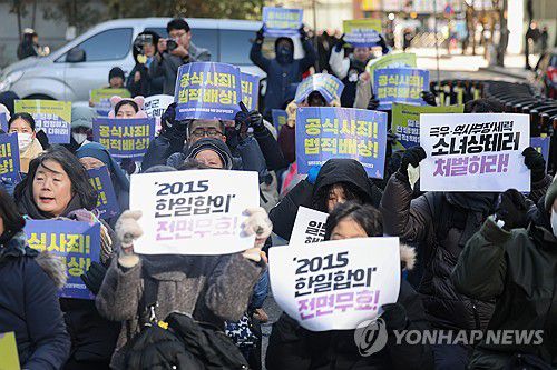 (서울=연합뉴스) 서대연 기자 = 31일 서울 종로구 주한일본대사관 인근에서 열린 제1733차 일본군성노예제 문제해결을 위한 정기 수요시위에서 참가자들이 구호를 외치고 있다. 2025.12.31 dwise@yna.co.kr ▶제보는 카카오톡 okjebo ▶연합뉴스 앱 지금 바로 다운받기~ ▶네이버 연합뉴스 채널 구독하기 <저작권자(c) 연합뉴스, 무단 전재