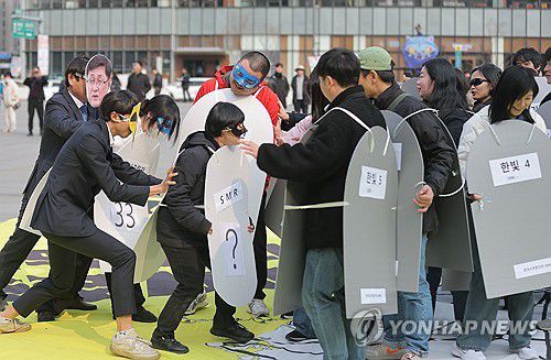 (서울=연합뉴스) 류영석 기자 = 11일 서울 종로구 세종문화회관 앞에서 신규핵발전소저지전국비상행동 회원들이 후쿠시마 원전 사고 15주기를 맞아 탈핵 촉구 퍼포먼스를 하고 있다. 2026.3.11 ondol@yna.co.kr ▶제보는 카카오톡 okjebo ▶연합뉴스 앱 지금 바로 다운받기~ ▶네이버 연합뉴스 채널 구독하기 <저작권자(c) 연합뉴스, 무단 전