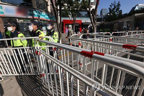 (서울=연합뉴스) 류영석 기자 = 전국민주노동조합총연맹(민주노총)이 서울을 비롯한 전국 14개 지역에서 대규모 총파업과 집회 개최를 예고한 20일 오전 서울시청역 인근에 경찰 펜스가 설치돼 있다. 2021.10.20 ondol@yna.co.kr <저작권자(c)연합뉴스. 무단전재-재배포금지.>