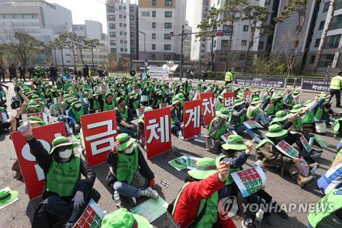 (서울=연합뉴스) 신현우 기자 = 전국교육공무직본부 서울지부 조합원들이 31일 오전 서울 종로구 서울시교육청 앞에서 임금체계 차별철폐 등을 촉구하며 구호를 외치고 있다. 2023.3.31 nowwego@yna.co.kr ▶제보는 카카오톡 okjebo ▶연합뉴스 앱 지금 바로 다운받기~ ▶네이버 연합뉴스 채널 구독하기 <저작권자(c)연합뉴스. 무단전재-재배포