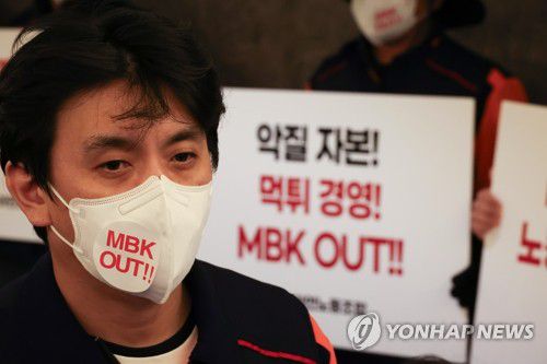 (서울=연합뉴스) 이진욱 기자 = 28일 고려아연 노조원들이 서울 용산구 몬드리안 호텔에서 열린 정기주주총회장 앞에서 피케팅 시위를 하고 있다. 2025.3.28 cityboy@yna.co.kr ▶제보는 카카오톡 okjebo ▶연합뉴스 앱 지금 바로 다운받기~ ▶네이버 연합뉴스 채널 구독하기 <저작권자(c) 연합뉴스, 무단 전재-재배포, AI 학습 및 활용