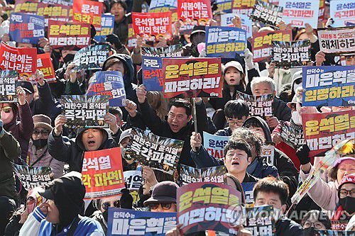 (서울=연합뉴스) 임화영 기자 = 29일 서울 종로구 서십자각 인근에서 윤석열 즉각퇴진·사회대개혁 17차 범시민대행진에서 참가자들이 구호를 외치고 있다. 2025.3.29 hwayoung7@yna.co.kr ▶제보는 카카오톡 okjebo ▶연합뉴스 앱 지금 바로 다운받기~ ▶네이버 연합뉴스 채널 구독하기 <저작권자(c) 연합뉴스, 무단 전재-재배포, AI