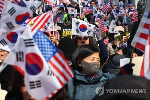 (서울=연합뉴스) 서대연 기자 = 윤석열 대통령의 탄핵심판 선고일인 4일 서울 용산구 한남동 대통령 관저 인근에서 열린 대한민국바로세우기국민운동본부 탄핵반대 집회에서 지지자들이 탄핵 기각을 촉구하고 있다. 2025.4.4 dwise@yna.co.kr ▶제보는 카카오톡 okjebo ▶연합뉴스 앱 지금 바로 다운받기~ ▶네이버 연합뉴스 채널 구독하기 <저작권자