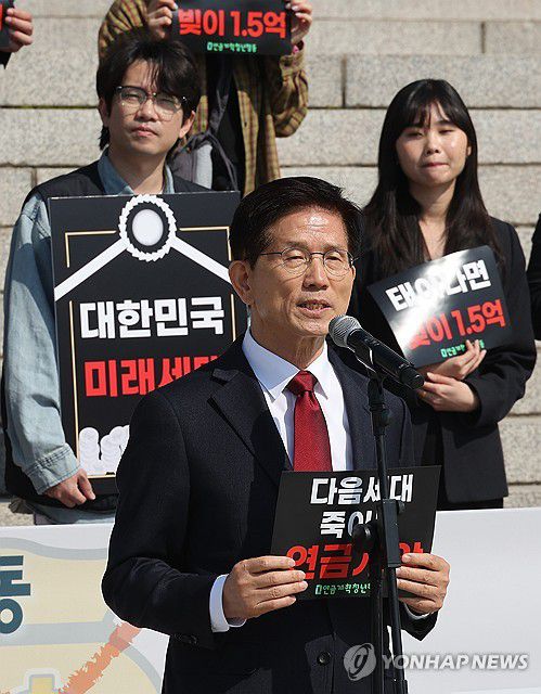(서울=연합뉴스) 박동주 기자 = 대선 출마를 선언한 김문수 전 고용노동부 장관이 11일 서울 여의도 국회 본청 계단 앞에서 열린 연금개혁청년행동 주최 '연금개악 규탄 집회'에서 발언하고 있다. 2025.4.11 pdj6635@yna.co.kr ▶제보는 카카오톡 okjebo ▶연합뉴스 앱 지금 바로 다운받기~ ▶네이버 연합뉴스 채널 구독하기 <저작권자(c)