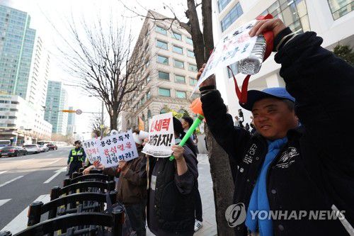 (서울=연합뉴스) 김성민 기자 = 윤석열 전 대통령이 한남동 관저를 떠나 서초동 사저로 거처를 옮기는 것으로 알려진 11일 서울 서초구 사저 아크로비스타 인근에서 구속 촉구 집회가 열리고 있다. 2025.4.11 ksm7976@yna.co.kr ▶제보는 카카오톡 okjebo ▶연합뉴스 앱 지금 바로 다운받기~ ▶네이버 연합뉴스 채널 구독하기 <저작권자(c)