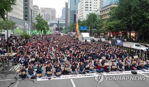 (서울=연합뉴스) 서대연 기자 = 26일 서울 중구 숭례문 일대에서 전국건설노동조합 가 열리고 있다. 2025.6.26 dwise@yna.co.kr ▶제보는 카카오톡 okjebo ▶연합뉴스 앱 지금 바로 다운받기~ ▶네이버 연합뉴스 채널 구독하기 <저작권자(c) 연합뉴스, 무단 전재-재배포, AI 학습 및 활용 금지> <저작권자(c)연합뉴스. 무단전재-재배