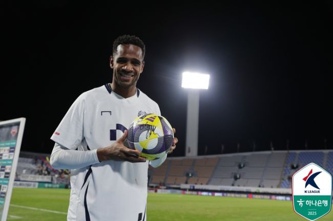 에드가. 사진 | 한국프로축구연맹 대구FC 공격수 에드가(37)가 팀을 구해냈다. 에드가는 2일 수원종합운동장에서 열린 ‘하나은행 K리그1 2025’ 35라운드 수원FC와 맞대결에서 후반 추가시간 극적인 동점골을 터뜨려 1-1 무승부를 이끌었다. 승점 1을 추가한 대구(승점 29)는 11위 제주SK(승점 35)와 격차를 6점으로 다소 좁혔다. 대구는 후반