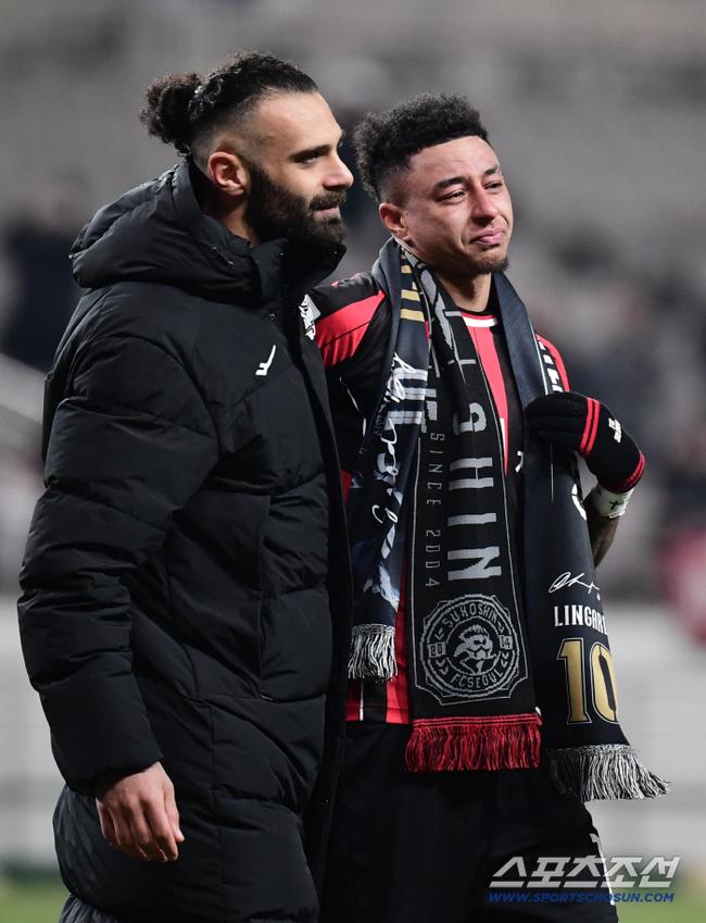 10일 오후 서울월드컵경기장에서 아시아챔피언스리그 엘리트(ACLE) 리그 6차전 FC서울과 멜버른시티FC의 경기가 열렸다. 경기 종료 후 FC서울 제시 린가드 환송행사가 열렸다. 팬들에게 인사 도중 아쉬움에 눈물 흘리는 린가드. 상암=송정헌 기자songs@sportschosun.com/2025.12.10/ 사진제공=FC서울 사진제공=FC서울 사진제공=FC서