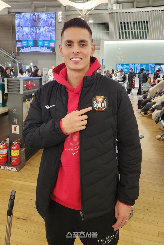 FC서울에 입단한 스트라이커 후이즈가 최근 동계전지훈련지인 중국 하이난 비행기에 오르기 전 스포츠서울과 인터뷰한 뒤 서울 엠블럼을 가리키며 포즈를 하고 있다. 사진 | 김용일 기자 “리빙레전드 몰리나의 길을 따르겠다.” 명가 재건을 그리는 FC서울 ‘김기동호’에 탑승한 ‘화제의 이적생’ 후이즈는 다부진 목소리로 말했다. 그는 최근 동계전지훈련지인 중국 하이