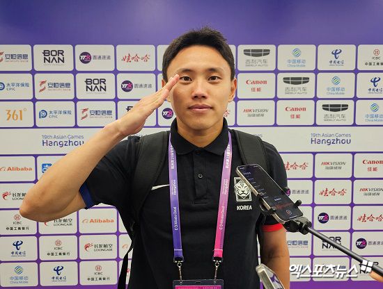 국군의 날을 맞아 상병으로 진급한 황선홍호 공격수 조영욱(김천 상무)이 중국 적지에서 애국가를 듣고 가슴이 더욱 벅차올랐다고 밝혔다. 우려했던 심판 판정에 대해서는 깔끔했다고 만족해 했다. 황선홍 감독이 이끄는 아시안게임 대표팀은 1일(한국시간) 중국 항저우에 위치한 황룽스포츠센터경기장에서 열린 개최국 중국과의 2022 항저우 아시안게임 남자축구 8강전서