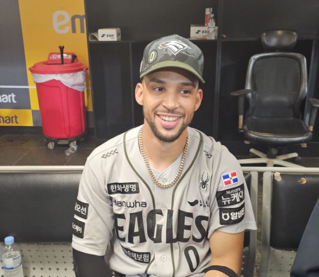 인터뷰에 임한 리베라토. 김영록 기자 사진제공=한화 이글스 "도미니카공화국 야구문화는 한국과 비슷하다. 결정적인 안타나 홈런을 치면 셀레브레이션을 서로 크게 한다." 승부를 결정지은 역전 3점포. 맞는 순간 우익수 키를 넘길 것은 확실한 빨랫줄 타구였다. 담장을 살짝 넘어가는 순간, 루이스 리베라토는 펄쩍 뛰어오르며 환호했다. 28일 인천 SSG랜더스필드.