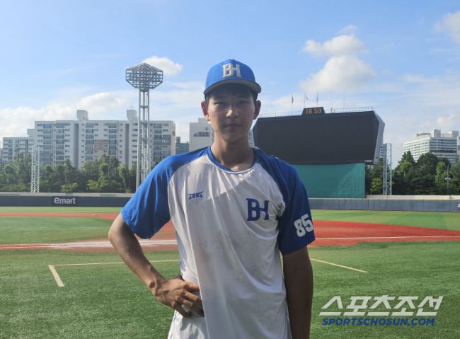 인터뷰에 임한 하현승. 김영록 기자 "정말 영광스럽긴 한데 아직 너무 부족하다. 더 갈고 닦겠다." 2년전 '경북고 오타니' 전미르(롯데 자이언츠, 상무)는 경북고에 청룡기 우승을 안겼다. '부산고 오타니' 하현승은 어떨까. 부산고는 29일 서울 목동구장에서 열린 제80회 청룡기 전국고교야구선수권 대회 및 주말리그 왕중왕전(조선일보·스포츠조선·대한야구소프트
