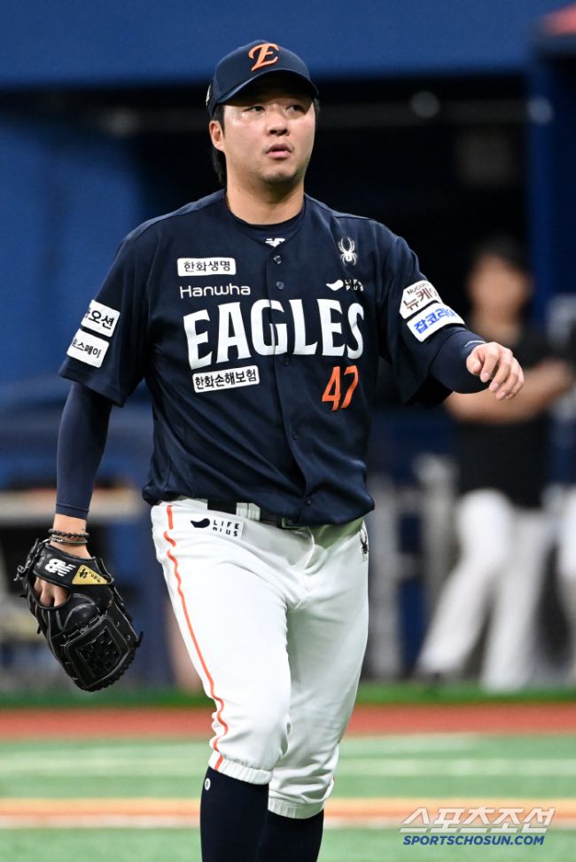 10일 고척스카이돔에서 열린 한화와 키움의 경기, 8회말 2사 한화 김범수가 키움 이주형을 삼진으로 처리한 뒤 더그아웃으로 향하고 있다. 고척=허상욱 기자wook@sportschosun.com/2025.05.10/ 3일 대전 한화생명볼파크에서 열린 NC-한화전. 11회초 김범수가 투구하고 있다. 대전=정재근 기자 cjg@sportschosun.com/202