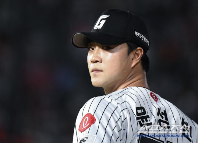 26일 부산 사직구장에서 열린 KIA와 롯데의 경기. 9회초 윤성빈이 등판하고 있다. 부산=정재근 기자 cjg@sportschosun.com/2025.7.26/ 인터뷰에 임한 롯데 윤성빈. 김영록 기자 26일 부산 사직구장에서 열린 KIA와 롯데의 경기. 9대4로 승리한 롯데 윤성빈이 정보근과 악수하고 있다. 부산=정재근 기자 cjg@sportschosun