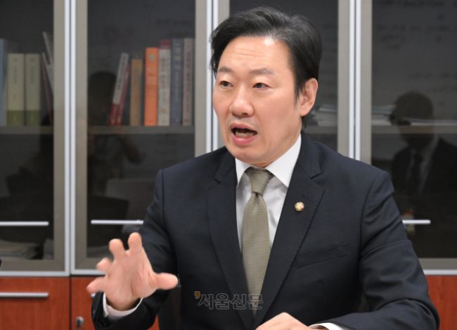 박수민 국민의힘 의원이 23일 국회 의원회관에서 6·3지방선거 서울시장 예비후보 인터뷰를 하고 있다. 안주영 전문기자 6·3 지방선거 국민의힘 서울시장 후보에 도전한 박수민 의원은 23일 “아무리 좋은 핸드폰도 혁신적인 신제품이 나오면 교체한다”며 “이제는 서울시장도 오세훈에서 박수민으로 ‘타임 투 체인지’다”라고 말했다. 이날 오 시장, 윤희숙 전 여의도