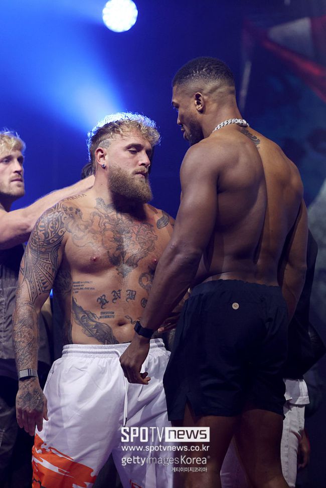 26.5파운드 차이. 복싱 대결을 벌이는 제이크 폴과 앤서니 조슈아의 계체 결과다. 19일(한국시간) 카세야 센터에서 열린 계체에서 폴은 216.7파운드(98.29kg), 조슈아는 243.4파운드(110.40kg)로 계체를 통과했다. 폴은 그동안 커리어 내내 자신보다 훨씬 작고 나이가 많은 상대들과 싸워왔지만, 이번에는 상황이 완전히 다르다. 커리어 동안