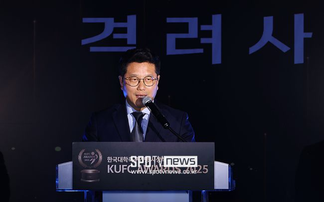한국대학축구연맹(KUFC)이 한 해 동안 대학 축구 발전을 위해 헌신한 선수·지도자·관계자들을 조명하는 시상식을 열고 2025시즌을 뜻깊게 마무리했다. 한국대학축구연맹 시상식(KUFC AWARDS 2025)은 29일 아주대학교 율곡관 영상홀에서 개최됐다. 이날 행사에는 박한동 한국대학축구연맹 회장을 비롯해 김승희 전무이사, 최근 수원삼성 감독으로 선임된 이