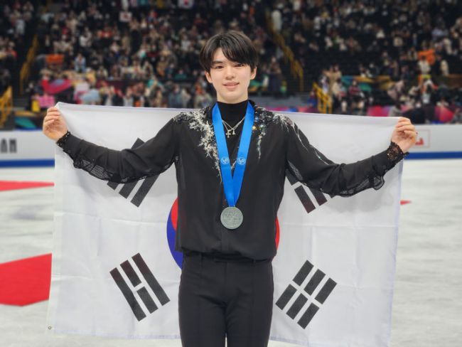 기사내용 요약 차준환·이해인, 나란히 세계선수권 은메달 획득 [서울=뉴시스] 차준환이 지난 25일 일본 사이타마 슈퍼 아레나에서 열린 2023 국제빙상경기연맹(ISU) 피겨스케이팅 세계선수권대회 남자 싱글 프리스케이팅에서 은메달을 획득한 뒤 포즈를 취하고 있다. (사진=대한빙상경기연맹 제공) 2023.03.25. photo@newsis.com *재판매 및