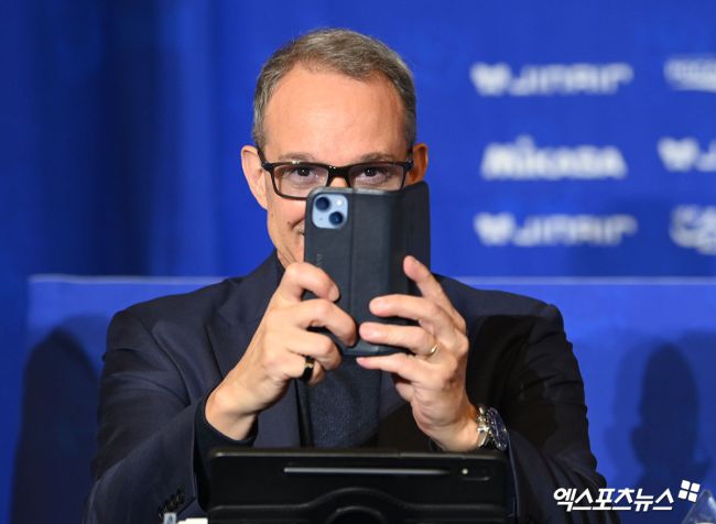 15일 오후 서울 강남구 호텔리베라 청담에서 열린 2025~2026 V-리그 남자부 미디어데이, 우리카드 마우리시오 파에스 감독이 미디어데이를 준비하고 있다. 고아라 기자 iknow@xportsnews.com