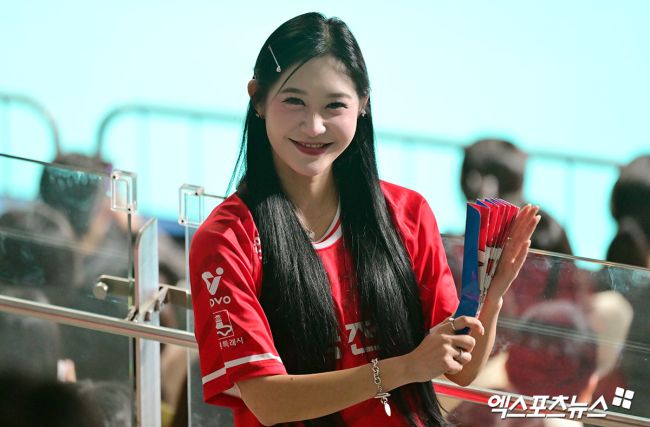 14일 오후 서울 장충체육관에서 열린 '진에어 2025-2026 V-리그' 우리카드와 한국전력의 경기, 유세리 치어리더가 열띤 응원을 선보이고 있다. 김한준 기자 kowel@xportsnews.com