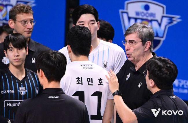 [서울=뉴시스] 남자배구 현대캐피탈 필립 블랑 감독이 26일 서울 장충체육관에서 열린 진에어 2025-2026 V-리그 남자부 우리카드와의 경기에서 선수들에게 지시를 내리고 있다. (사진-KOVO 제공) 2025/11/26 *재판매 및 DB 금지 [서울=뉴시스]김민수 수습 기자 = 3연패 탈출에 성공한 현대캐피탈 필립 블랑 감독이 안도의 한숨을 내쉬었지만