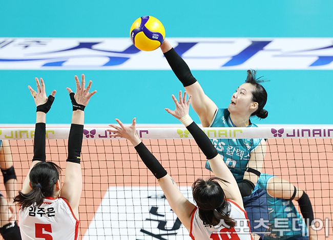 2025-2026 진에어 V-리그 여자부 GS칼텍스-페퍼저축은행 경기가 5일 서울 장충체육관에서 열렸다. GS칼텍스 유서연이 스파이크를 때리고 있다. 2025.12.05. [스포츠투데이 권광일 기자 sports@stoo.com]