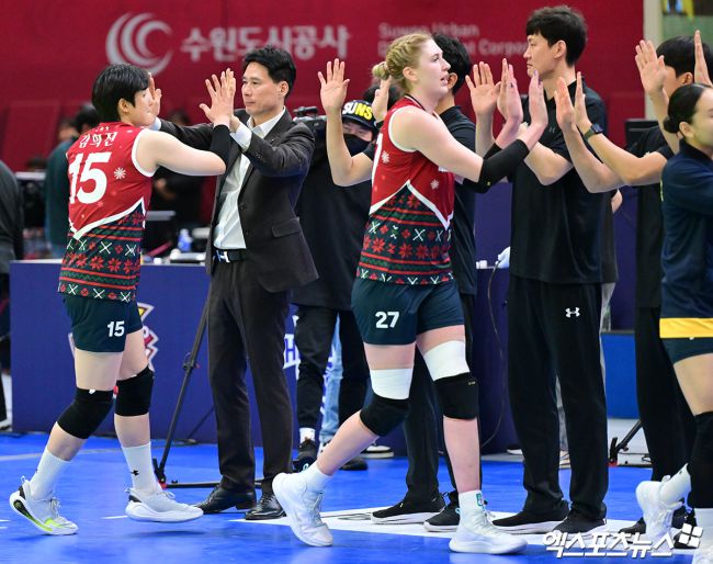 "보상받은 느낌이네요"…'2세트 역전극→승점 3점 획득' 현대건설, 사령탑도 '대만족' [인천 현장]