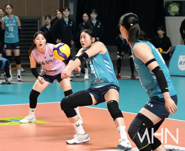 10일 오후 서울 장충체육관에서 2025-26시즌 진에어 V-리그 여자부 GS칼텍스와 IBK기업은행의 경기가 열렸다. 이날 GS칼텍스 권민지가 리시브를 시도하고 있다.