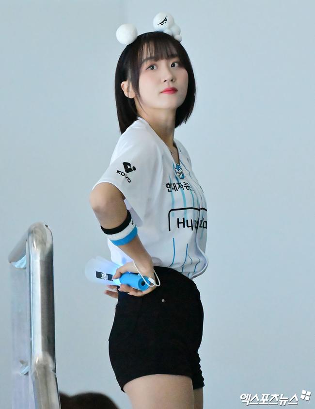 16일 오후 인천 계양체육관에서 열린 '진에어 2025-2026 V-리그' 대한항공과 현대캐피탈의 경기, 김가영 치어리더가 열띤 응원을 선보이고 있다. 김한준 기자 kowel@xportsnews.com